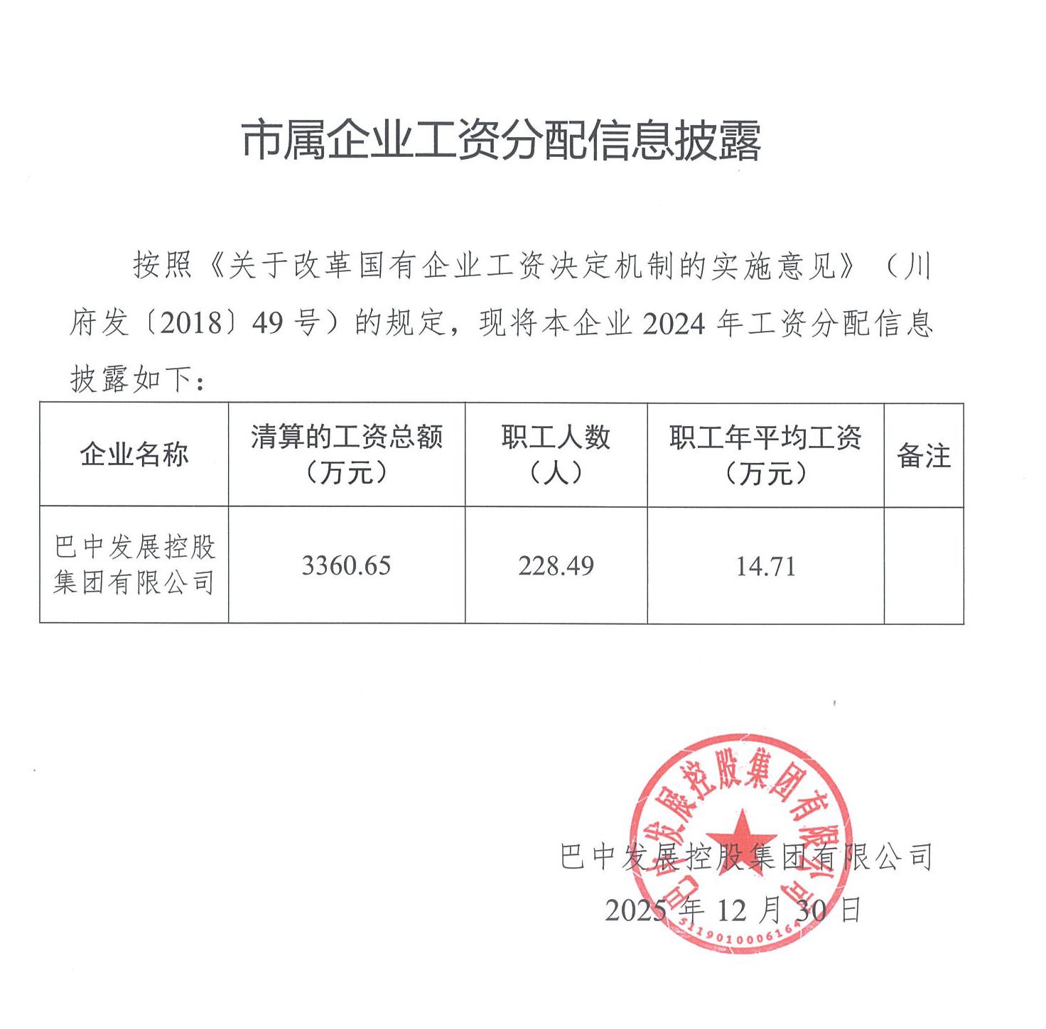 市屬企業工資分配信息披露